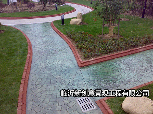 艺术压模地坪利用模具可以制成不同图案纹理,地坪整体平整,但这些图案纹理却是凹凸立体的,增加了地面的防滑性能,有利于雨天行人车辆的行走。艺术压模地坪的图案纹理可以根据需要打造出逼真的大理石、石板、瓦片、砖石、岩石、卵石等自然效果,用于园林道路或者广场道路,让道路也融入自然环境之中。